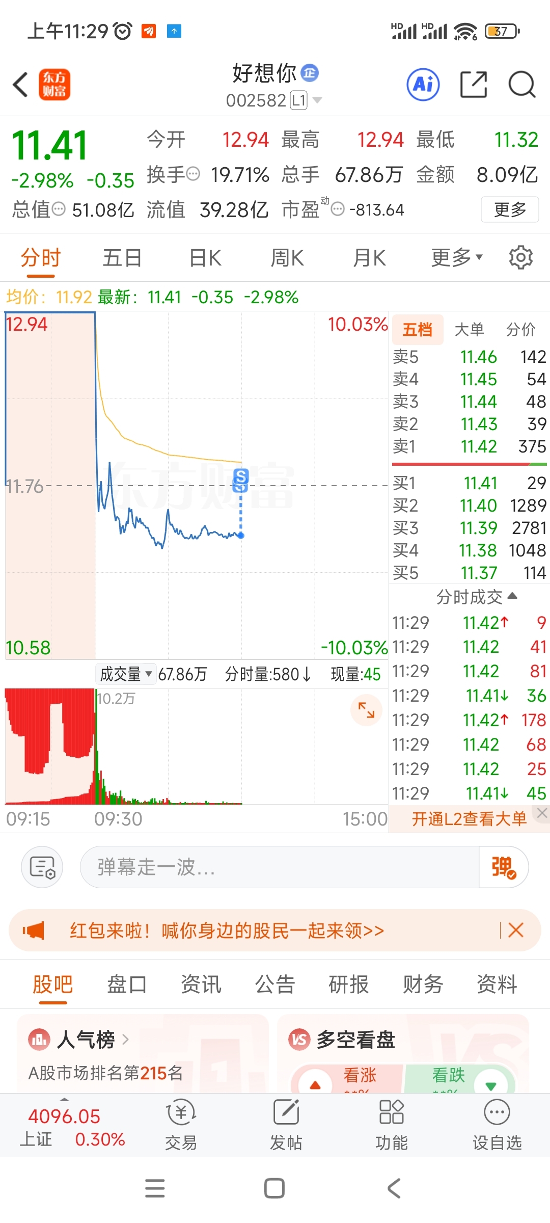 $好想你(SZ002582)$ 下午一剑开天门吧
