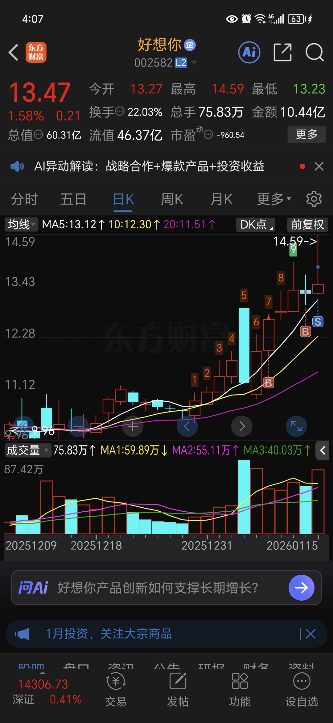 $好想你(SZ002582)$ 卖飞了。给我洗走了