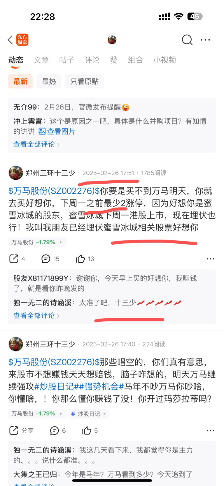 温馨提示: 1.根据《证券法》规定,禁止编造、传播虚假信息或者误导性信息,扰乱证券市场;2.用户在本社区发表的所有资料、言论等仅代表个人观点,与本网站立场无关,不对您构成任何投资建议。用户应基于自己的独立判断,自行决定证券投资并承担相应风险。《东方财富社区管理规定》