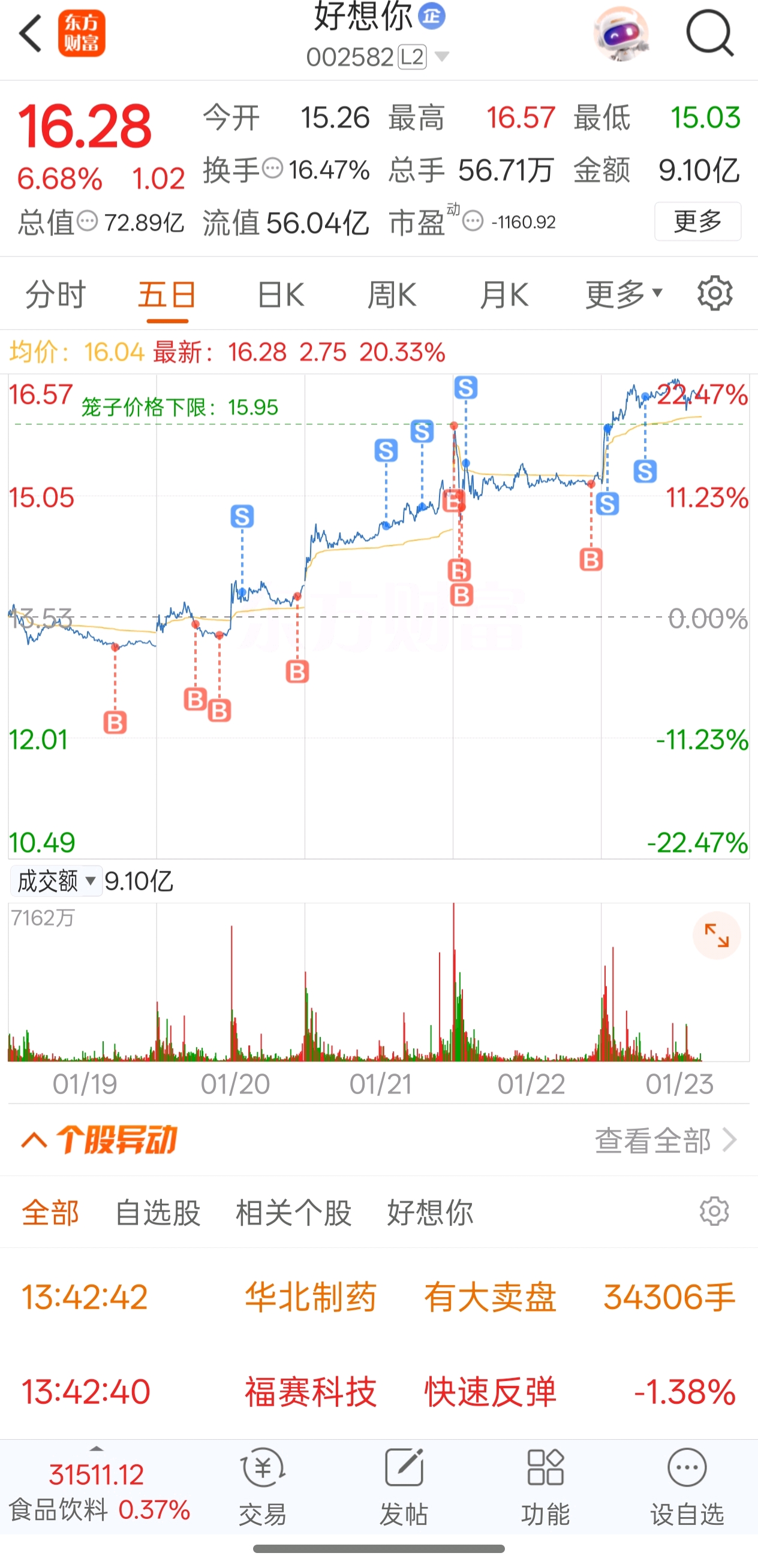 $好想你(SZ002582)$ 获利结算啦