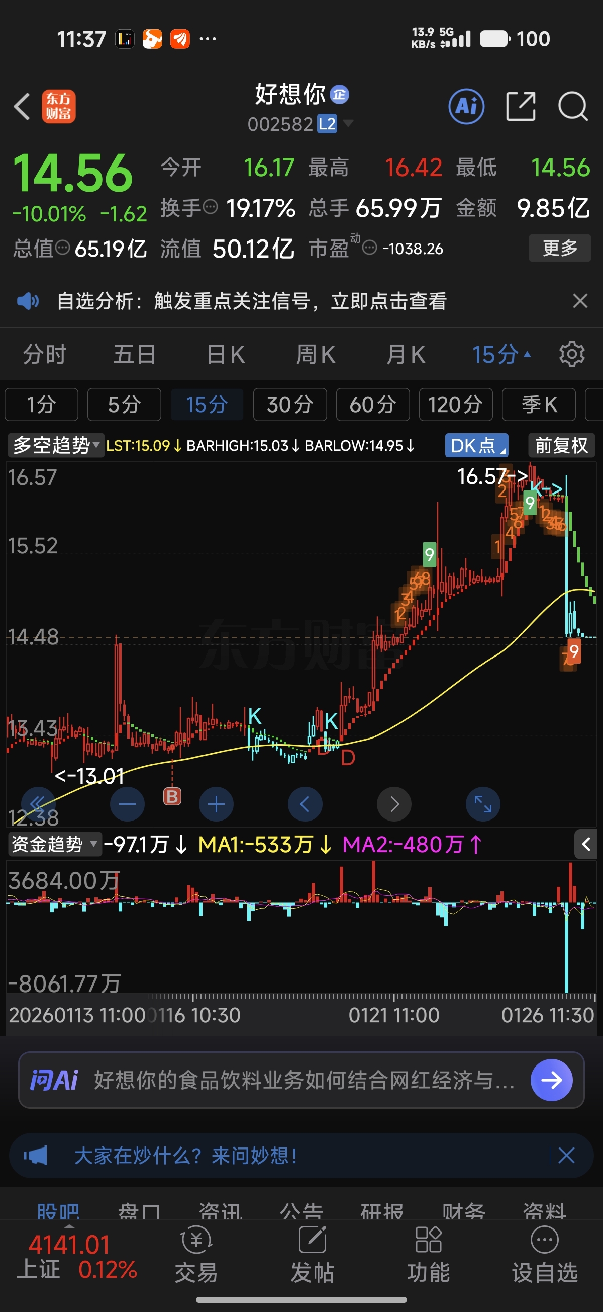 $好想你(SZ002582)$ 涨了,夸。跌了,骂。一如既往地菜。