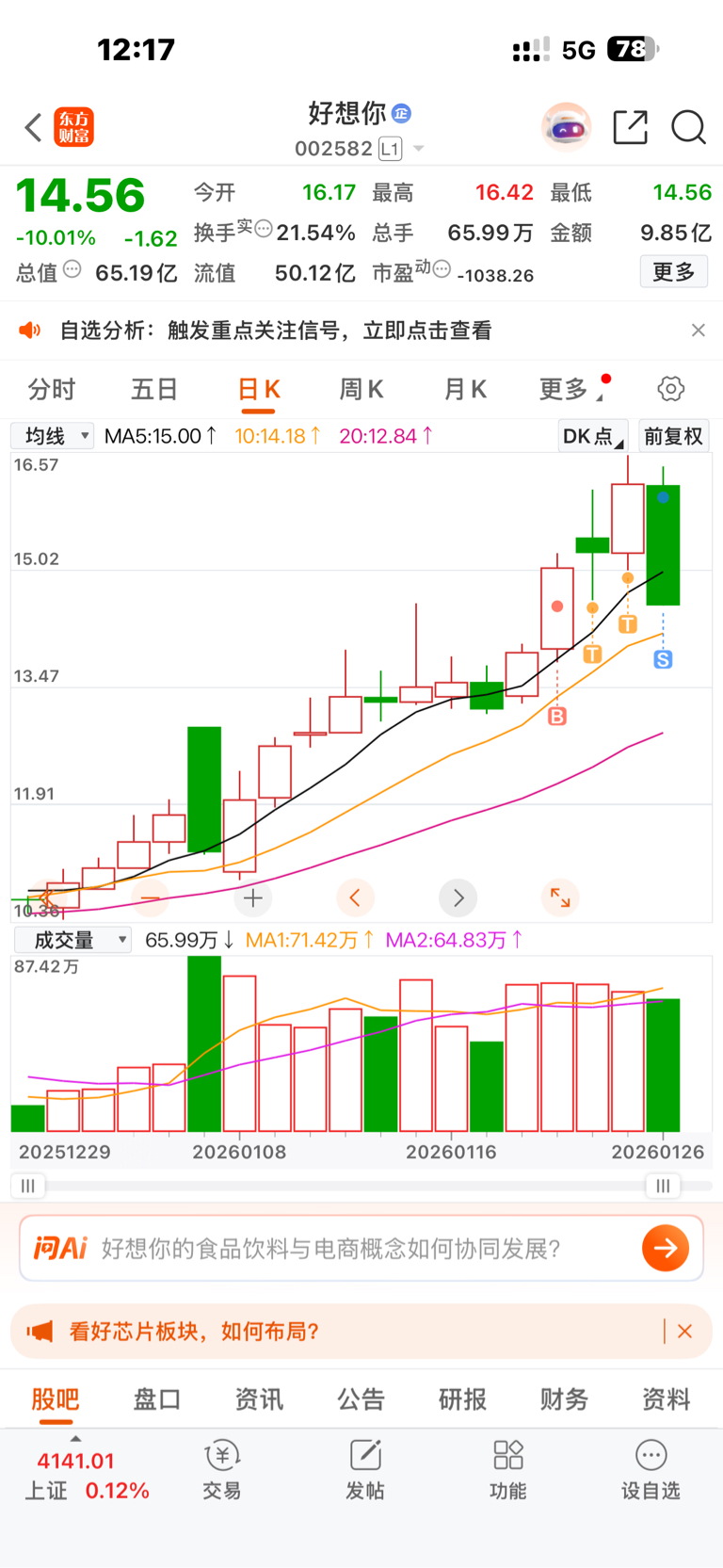 $好想你(SZ002582)$ 主力你跑我也跑