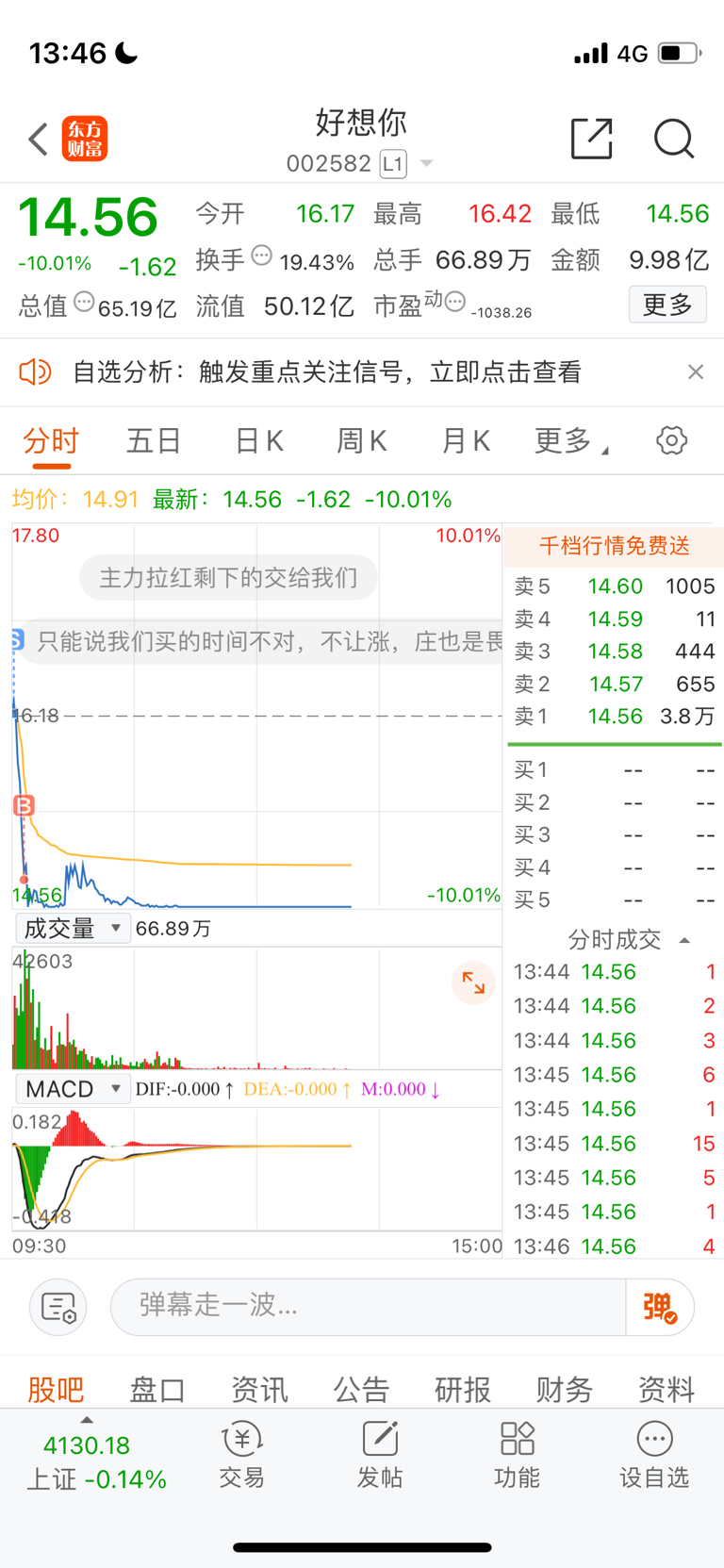 $好想你(SZ002582)$ 错误操作,就不该接回来