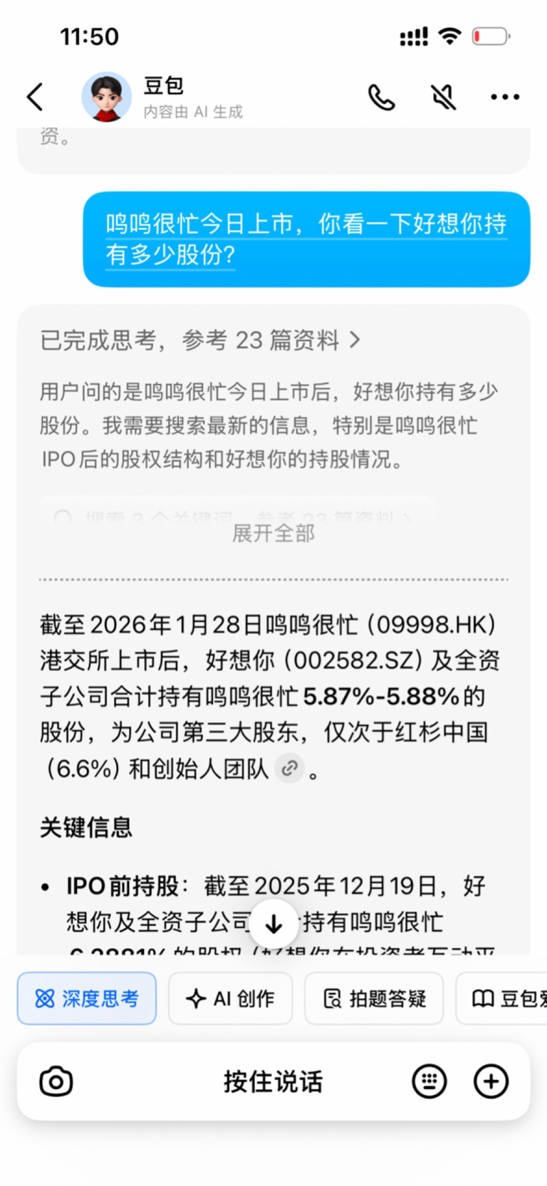 $好想你(SZ002582)$ 你确定不来个涨停,庆祝一下,意思一下????快要千亿市值的前几名公司大股东