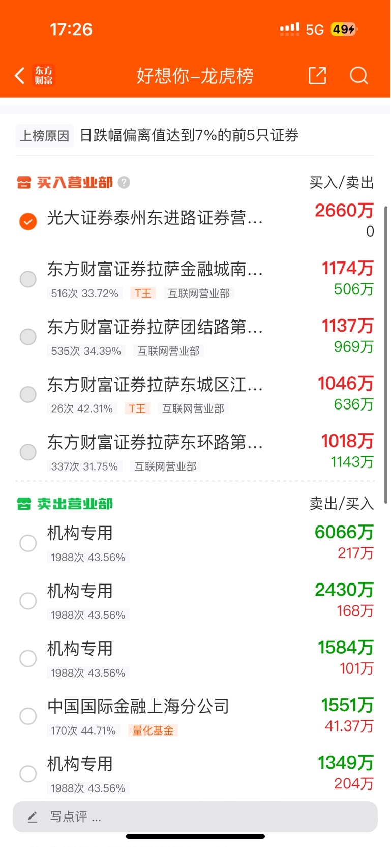 $好想你(SZ002582)$ 最新证据,兴全违规交易,明天一起举报,证据如下:首先,兴全通过4个账户持股好想你,用比例超过了10%,但是没有举牌,因为没有证据证明是一致行动人,但是今天的龙虎榜,明显看到4个账户交易了一样多的次数———1988次,这就能够证明账户存在同买同卖情况了,按照要求是构成一致行动人的,下面请看图片