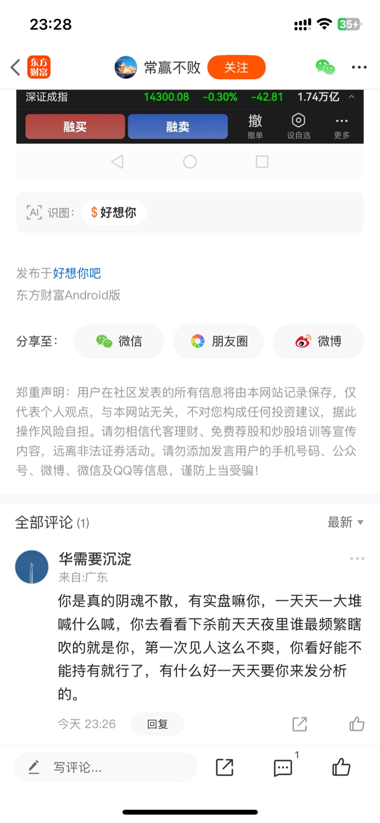 温馨提示: 1.根据《证券法》规定,禁止编造、传播虚假信息或者误导性信息,扰乱证券市场;2.用户在本社区发表的所有资料、言论等仅代表个人观点,与本网站立场无关,不对您构成任何投资建议。用户应基于自己的独立判断,自行决定证券投资并承担相应风险。《东方财富社区管理规定》