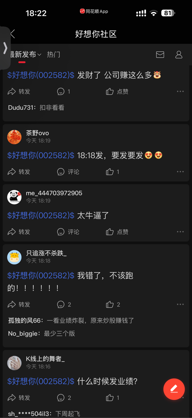 $好想你(SZ002582)$ 这市场纯度还是太高了,这周被兑现,业绩披露一发一堆人又说牛逼,怎么,下周又要利好兑现我?