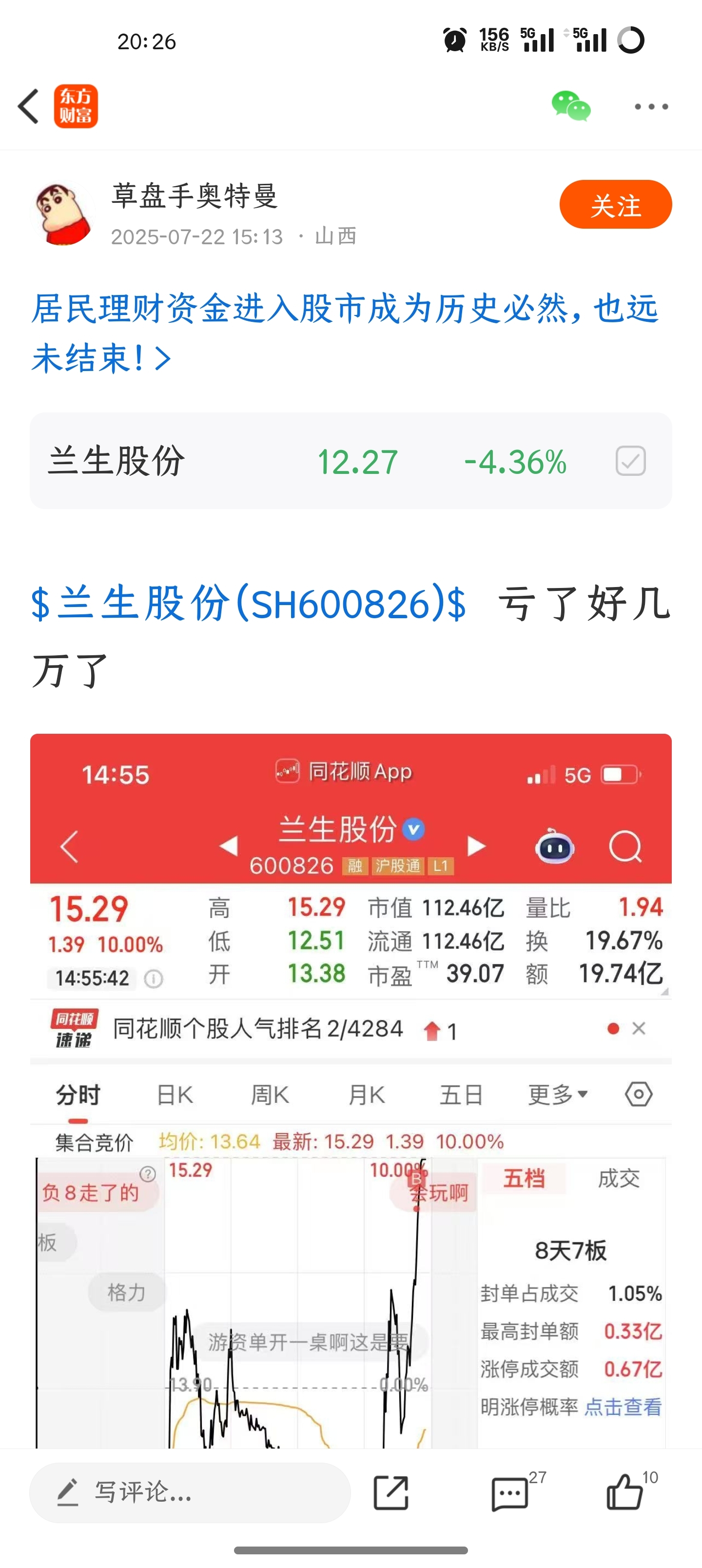 我卖飞了从不搞心态,好就好,不好就是不好,对于好想你这只票,我的分析充分客观。