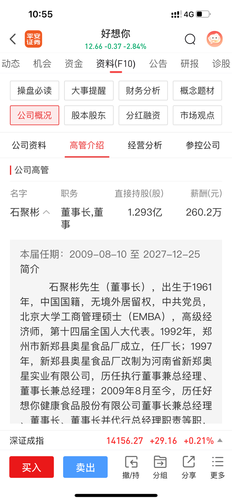 $好想你(SZ002582)$ 董事长,持有1.293亿股,从最高位16.57元跌到12.66元,董事长这几天亏了5个亿!董事长工资260万,亏了192年的工资!大家一起亏就不叫亏,是不是这个道理,有钱人更会计较金钱的得失!