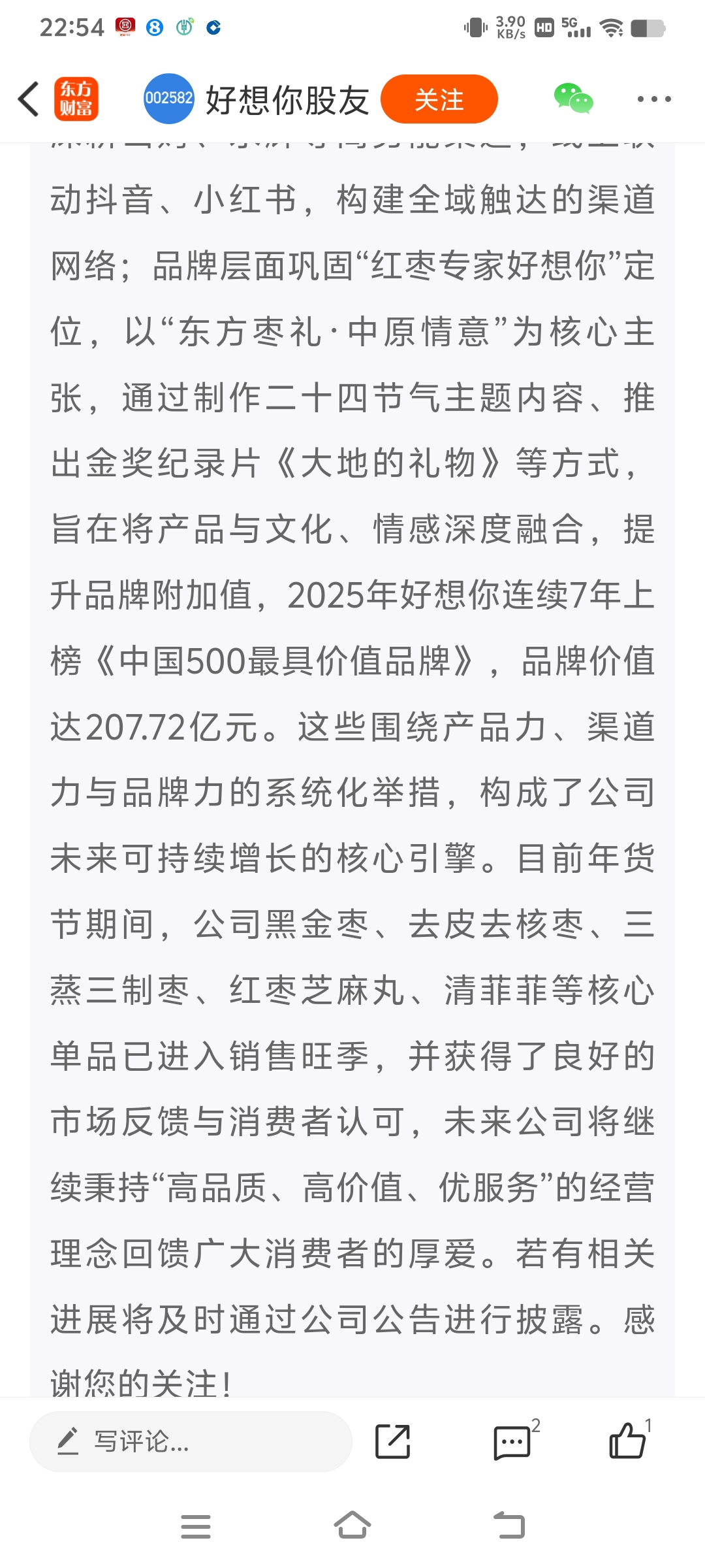 好想你明天要暴涨了:董秘说公司品牌价值207亿,股价从明天起要起飞了!开始要抢票