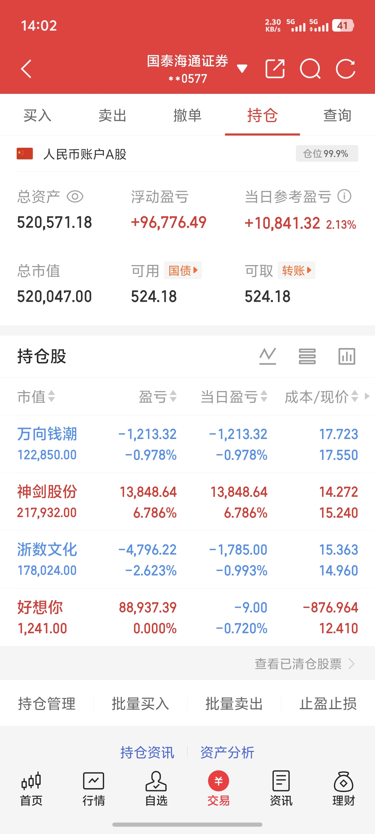 好险昨天卖了你买神剑,全仓拿了你一个多月