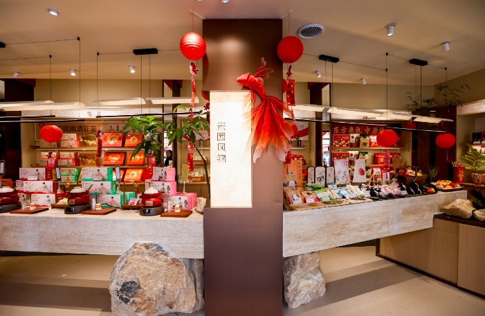 步入门店,名为“宋园风物”的核心区域,直观展现了“枣礼”“豫礼”“宋礼”的完美融合。