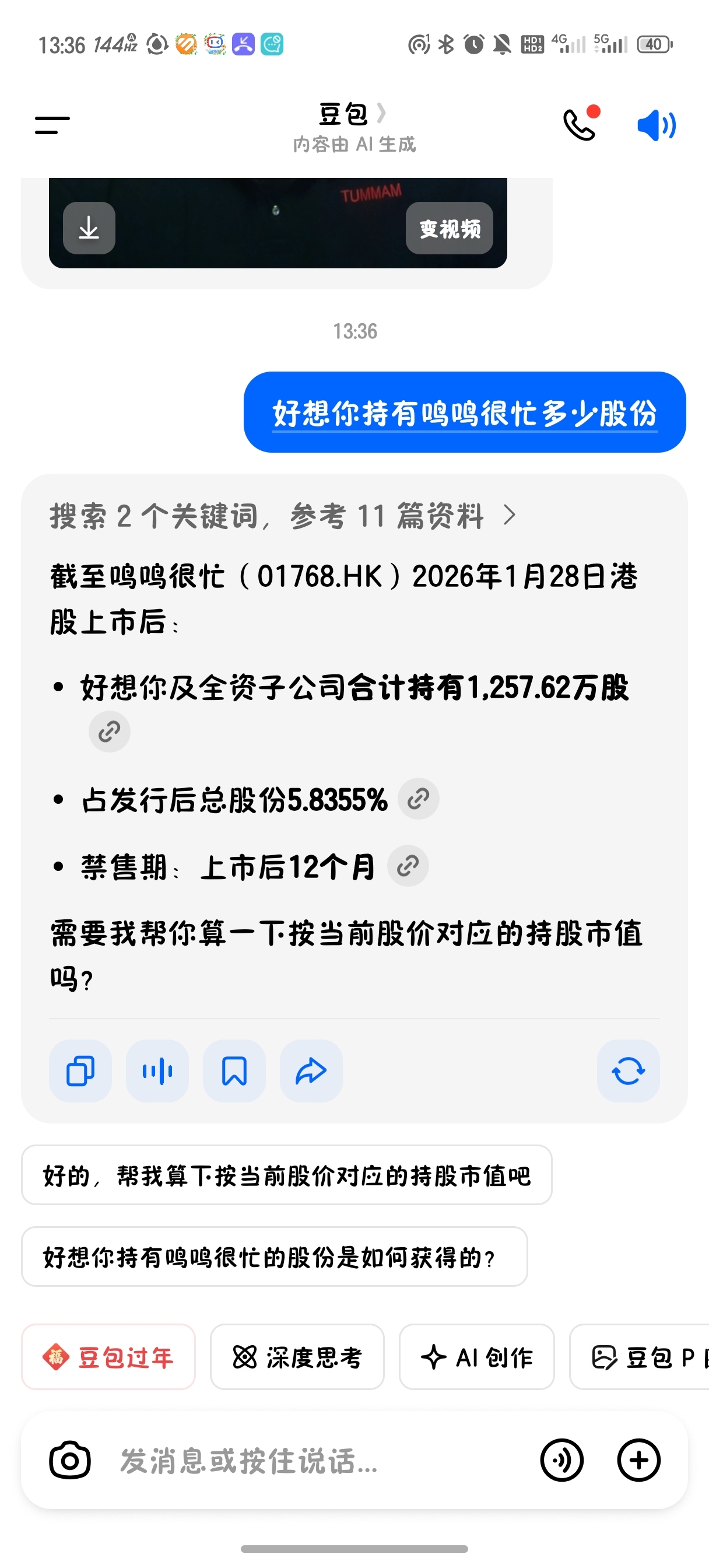 $好想你(SZ002582)$ 这个股价才50多亿啊?持有的鸣鸣很忙就有将近50亿了?