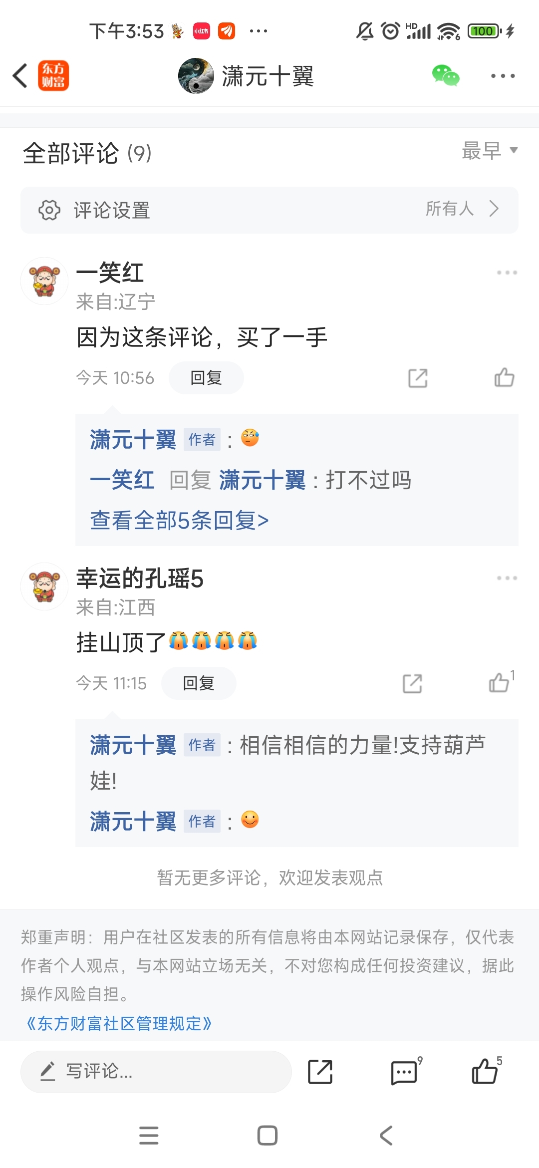 温馨提示: 1.根据《证券法》规定,禁止编造、传播虚假信息或者误导性信息,扰乱证券市场;2.用户在本社区发表的所有资料、言论等仅代表个人观点,与本网站立场无关,不对您构成任何投资建议。用户应基于自己的独立判断,自行决定证券投资并承担相应风险。《东方财富社区管理规定》