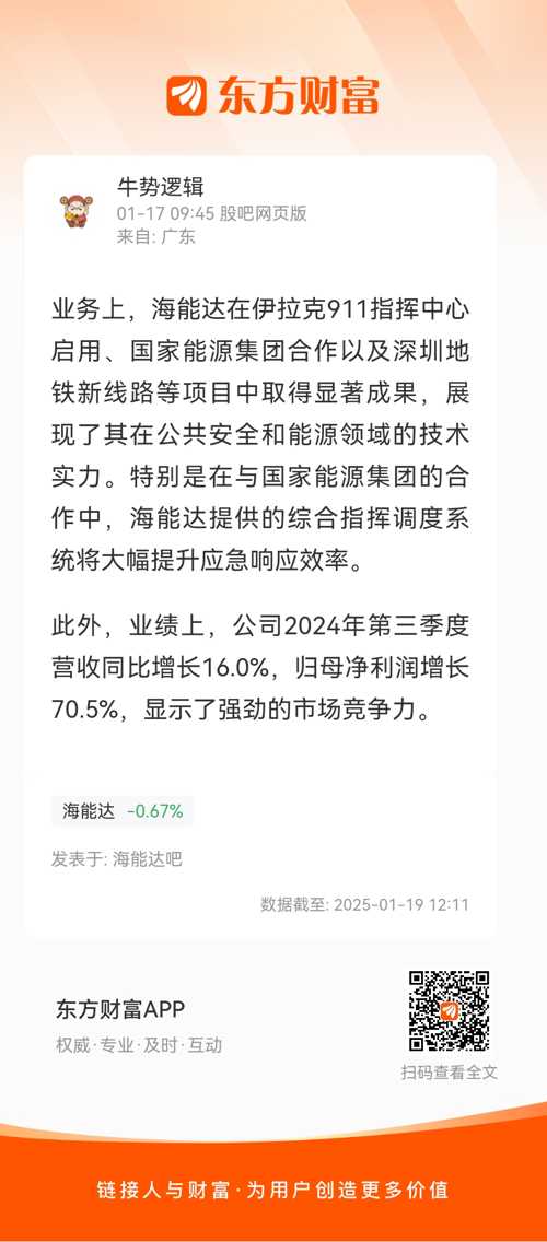 业务上,海能达在伊拉克911指挥中心启用、国家能源集团合作以及深圳地铁新线路等项目中取得显著成果,展现了其在公共安全和能源领域的技术实力。特别是在与国家能源集团的合作中,海能达提供的综合指挥调度系统将大幅提升应急响应效率。
