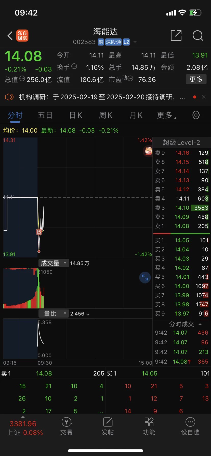 联创电子13.48元买了,金字塔挂单 越跌才买越多