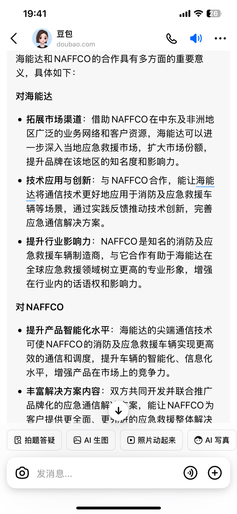 naffco这家公司可不得了,这次合作意义非凡堪比核弹级别。以前200E订单比起这个来简直弱爆了,以后中东市场将彻底打开,并且全球方面又带来深远影响!这次海能达应该市值突破500E!