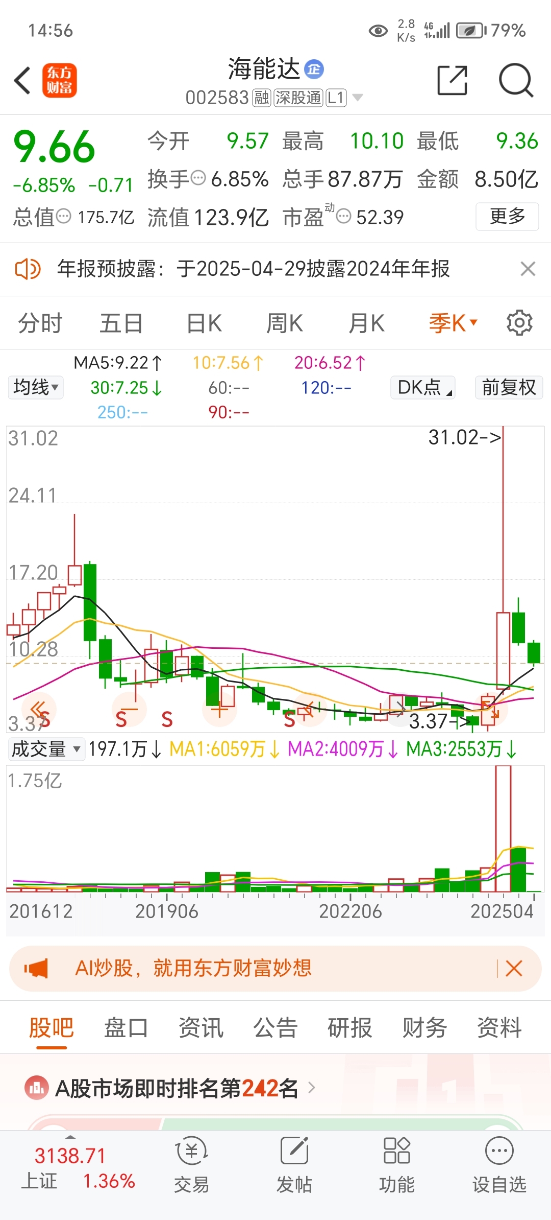 $海能达(SZ002583)$ 季线有支撑,真惨