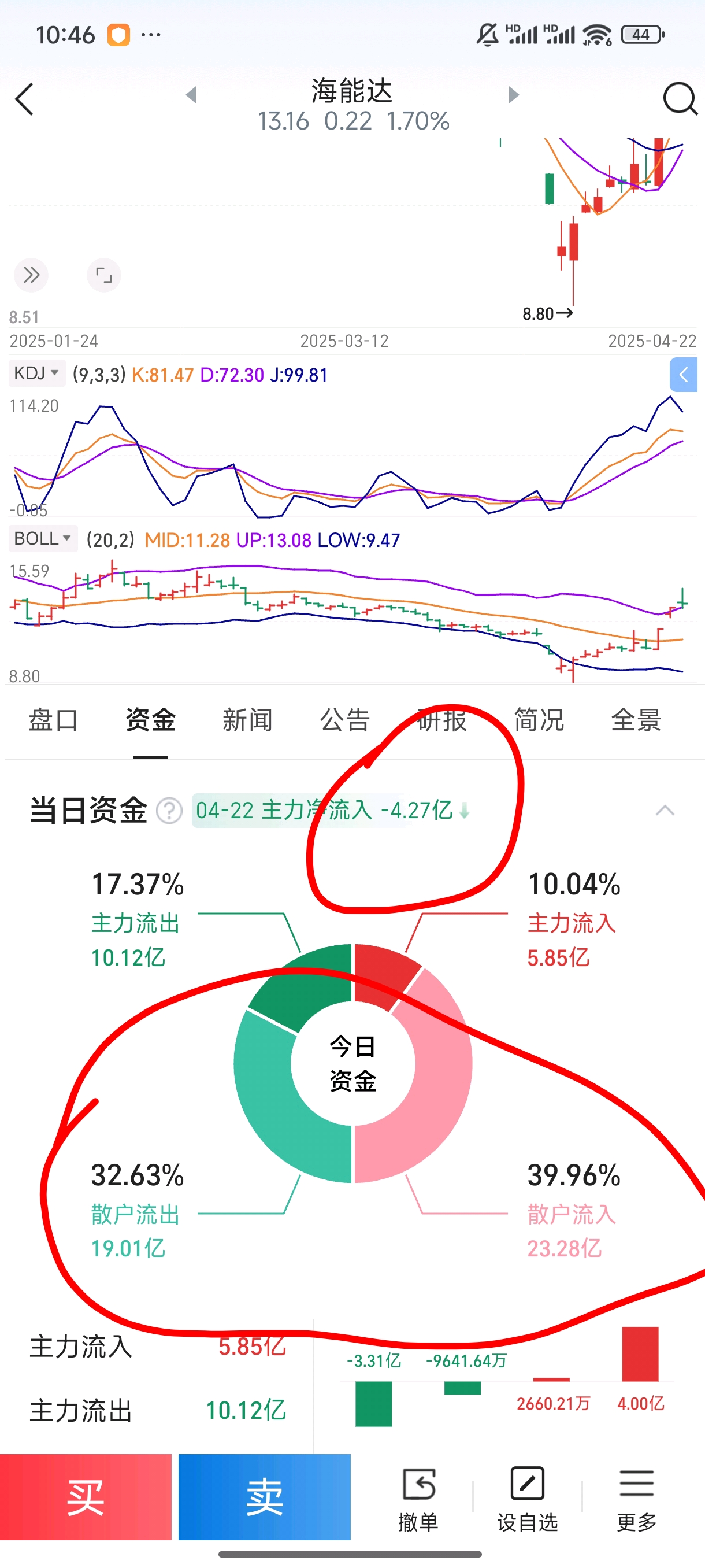 $海能达(SZ002583)$ 你们的头是真铁,主力跑4个亿,你们买4个亿