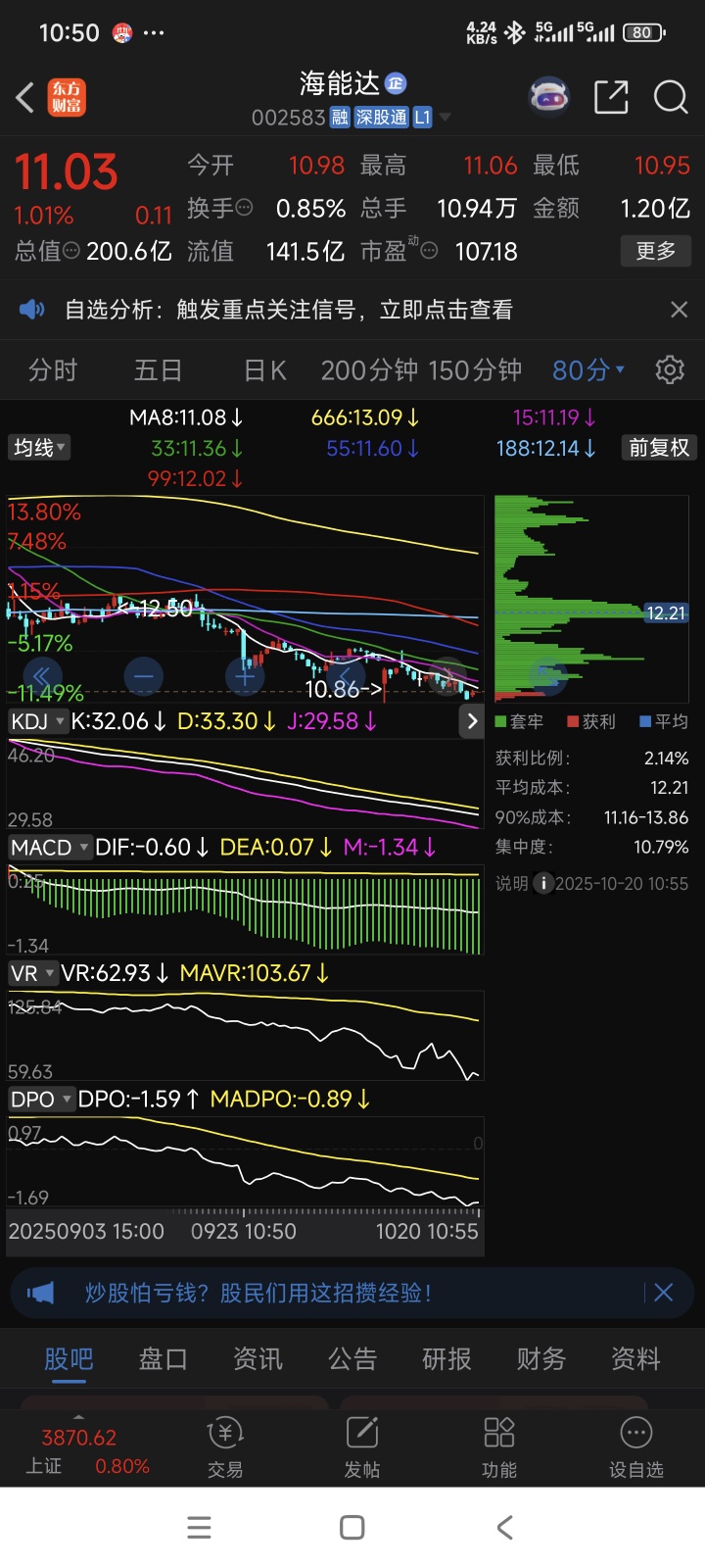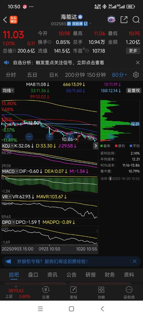 $海能达(SZ002583)$  下午会跌吗?