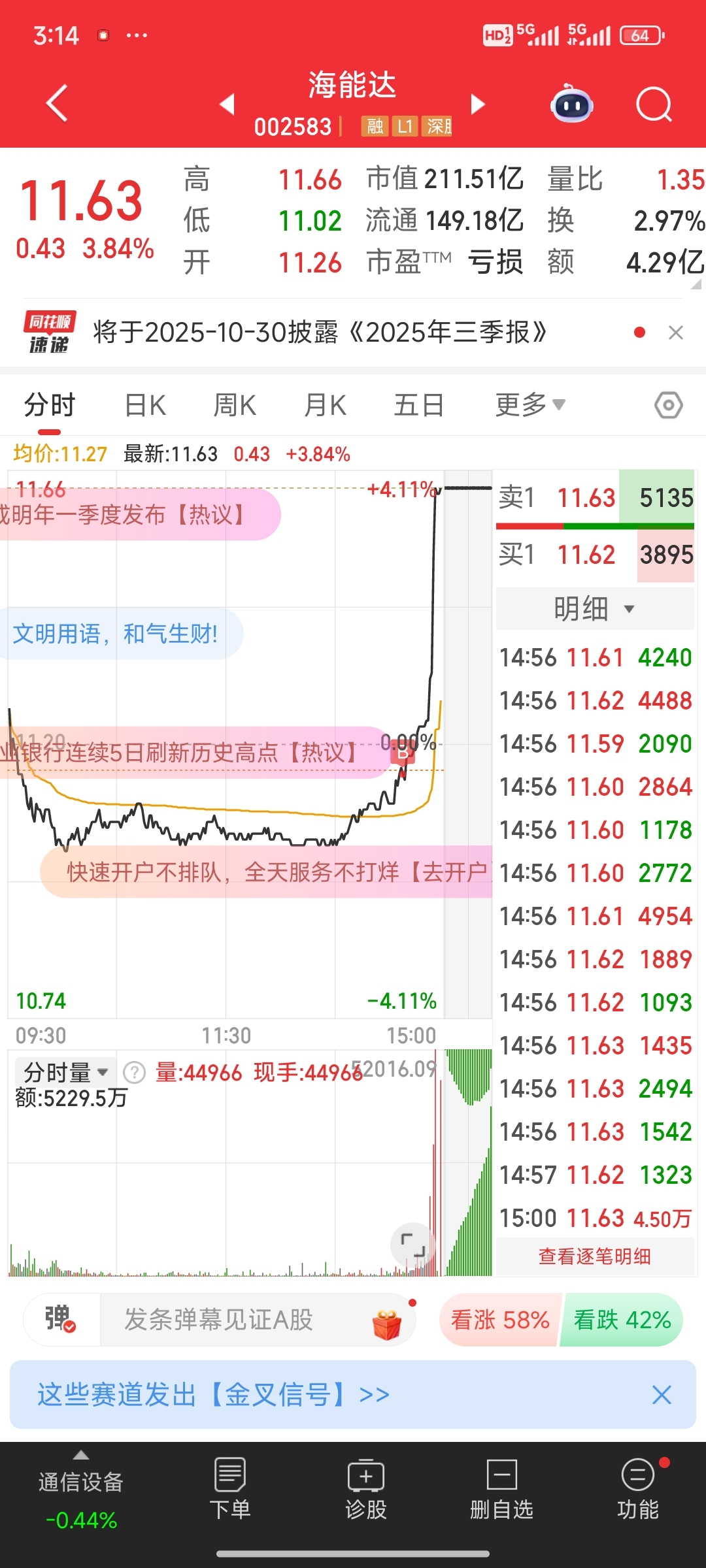 $海能达(SZ002583)$ 因为上班没能买在本日低点,可惜了