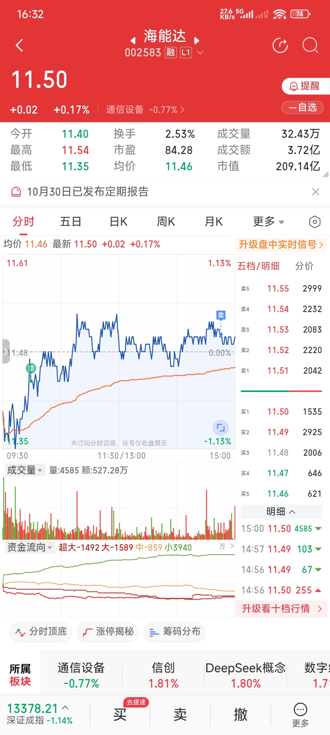 $海能达(SZ002583)$ 你可以放心涨了,因为我尾盘卖了。