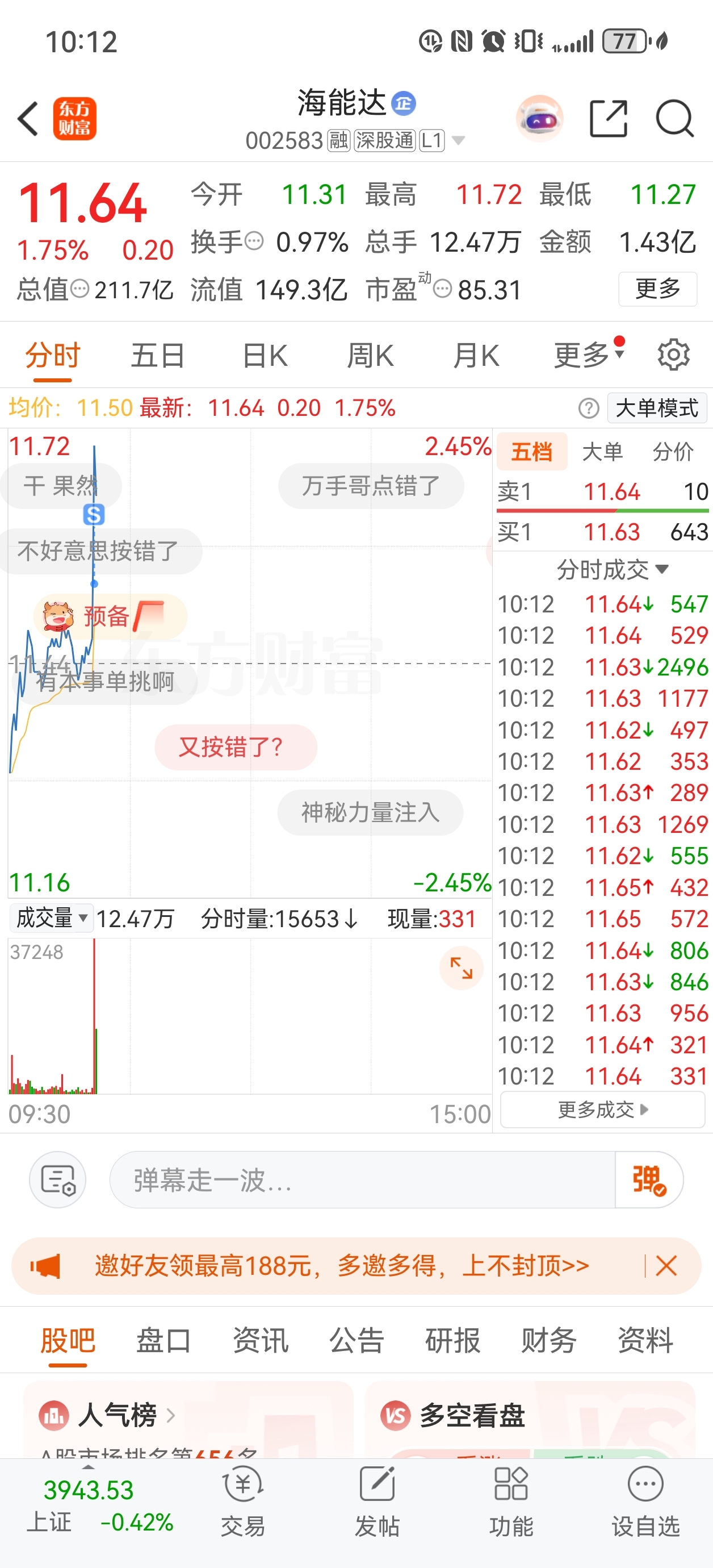 $海能达(SZ002583)$ 该哭吗这么低被吃了