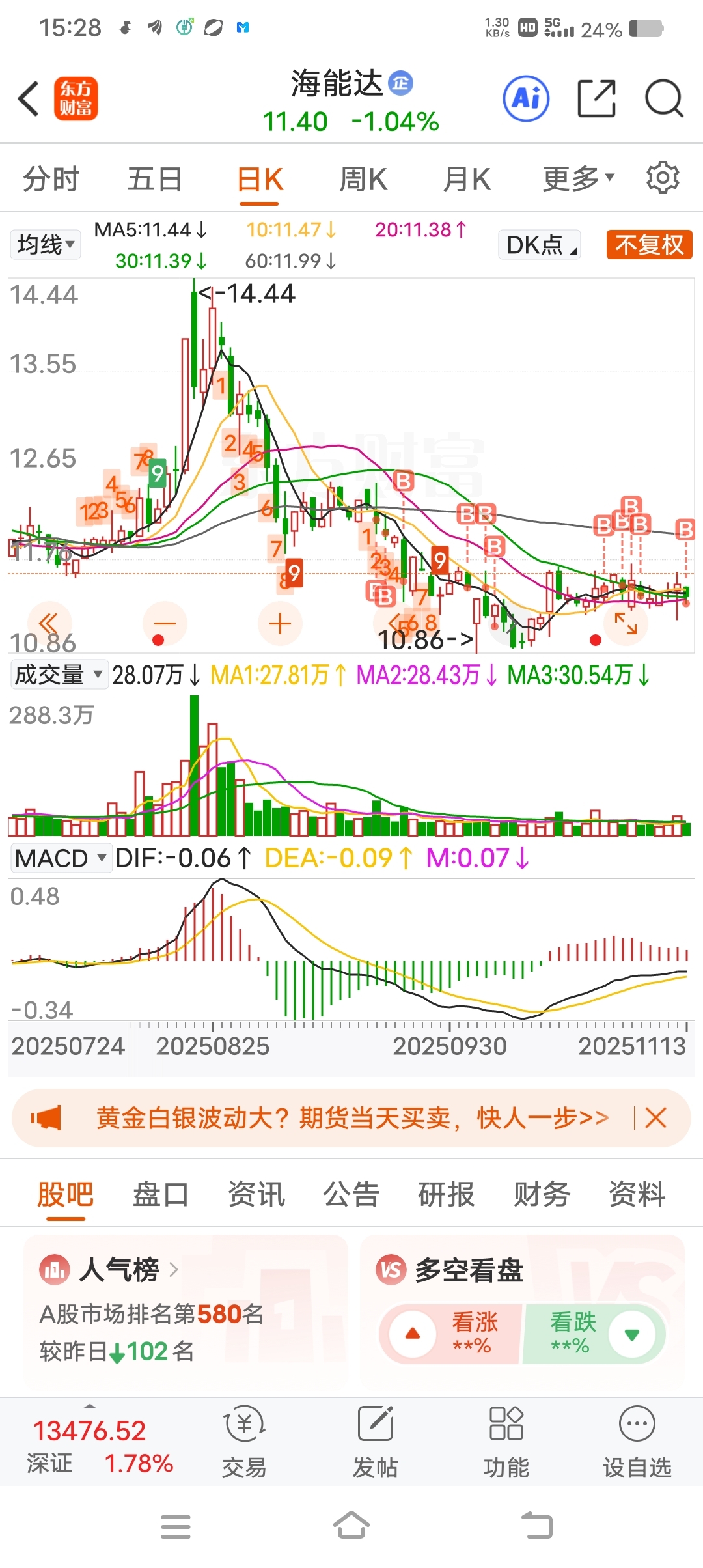 $海能达(SZ002583)$ 抄底抄到半山腰