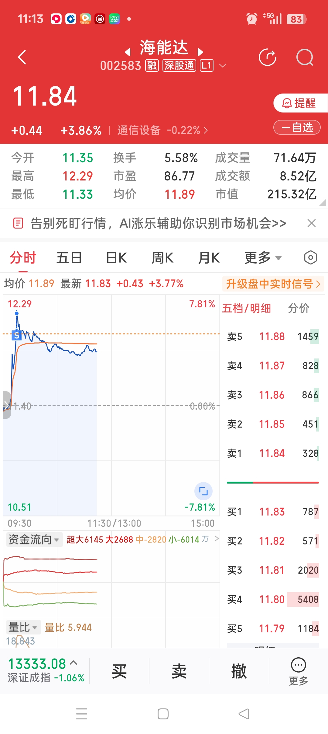 $海能达(SZ002583)$ 兄弟们留下来发财 我先撤