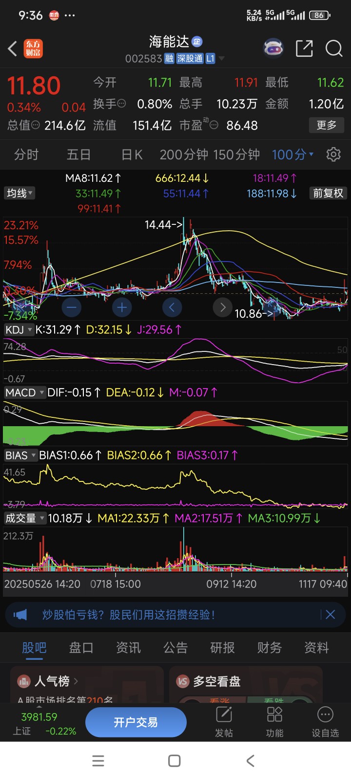 $海能达(SZ002583)$  我都说了今天肯定跌,竞价都这样那还想翻天?这里的人只爱听唱多的,做人都真的弱,何况炒股