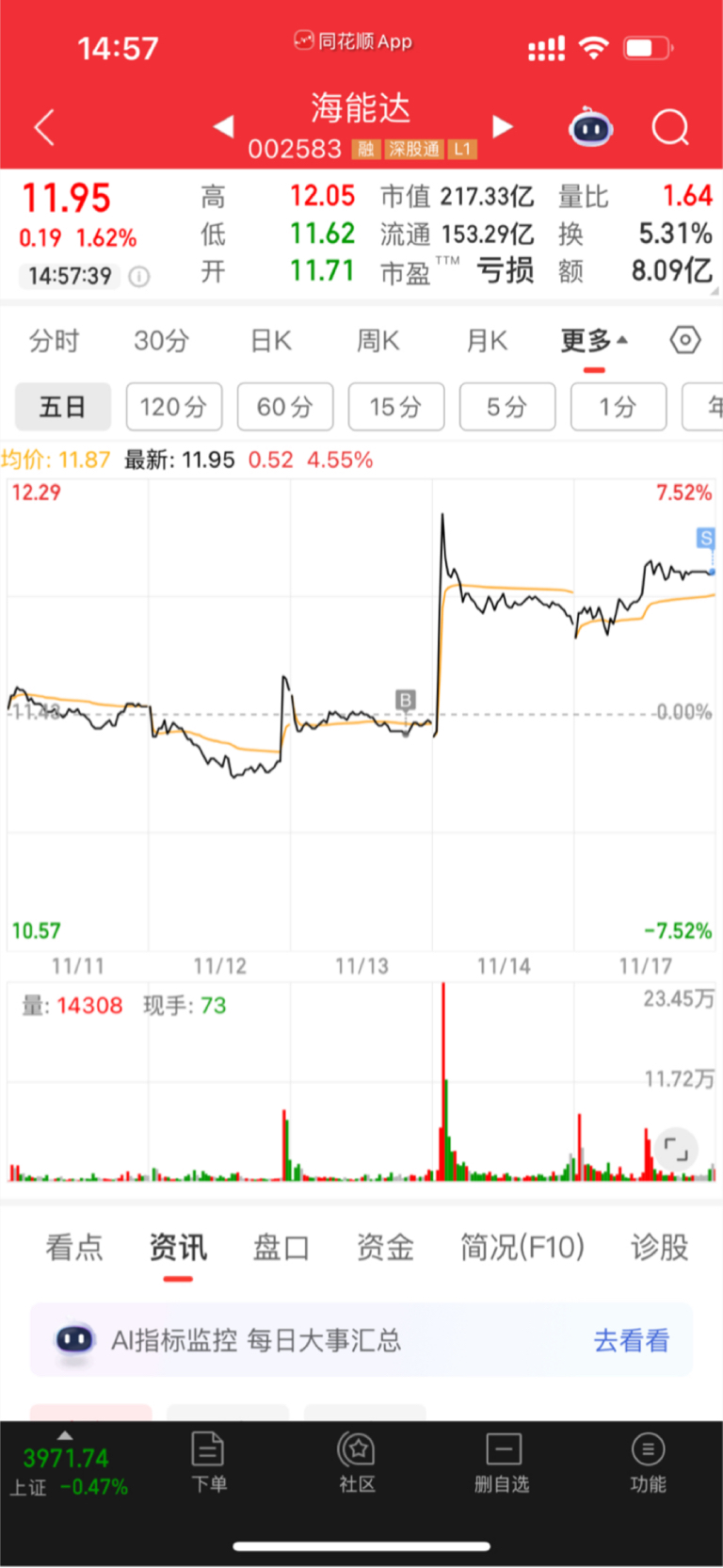 $海能达(SZ002583)$ 今天量跟不上,先出,明天再看看