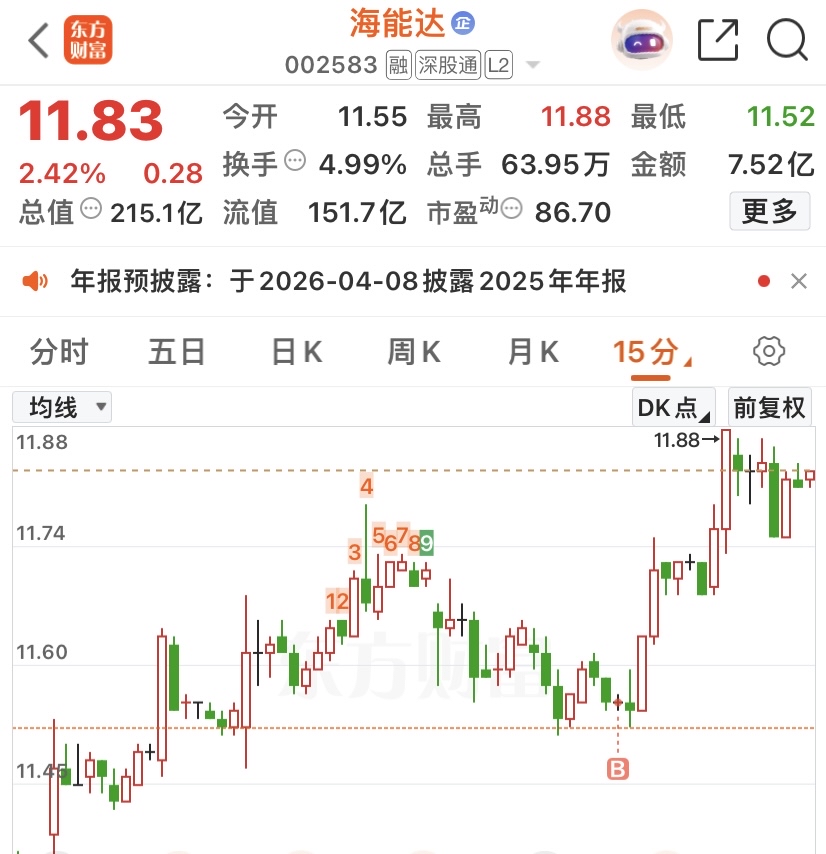 海能达:涨停八九卡得牢,一分不过控前高,昨日低吸仍未动,无量拉升再高抛