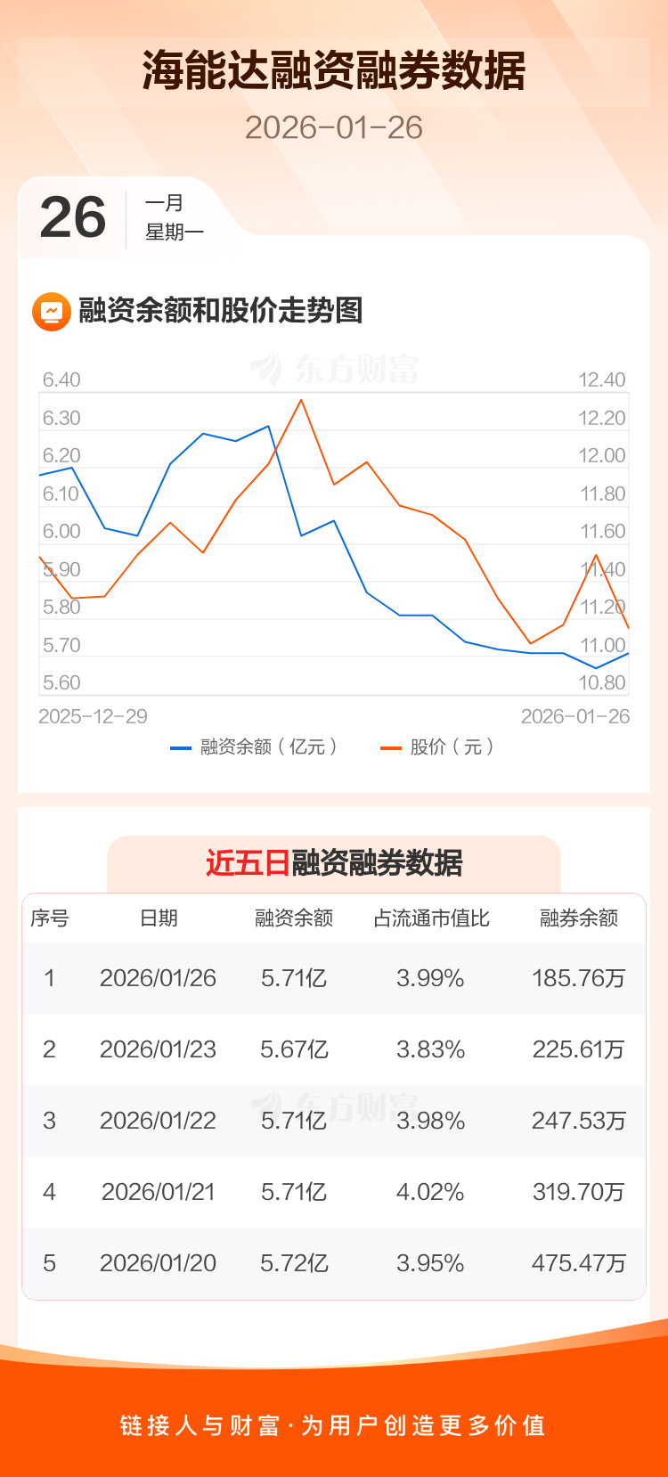交易所最新数据显示,海能达于2026年1月26日获融资买入3432.08万元,融资偿还3038.16万元,当日融资净买入393.92万元。目前,该股融资余额5.71亿,占流通市值比例为3.99%。