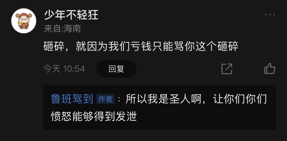 骂我的无一例外都是这样的人罢了,我宽恕你们,毕竟看着股价下跌你们又无能又愤怒