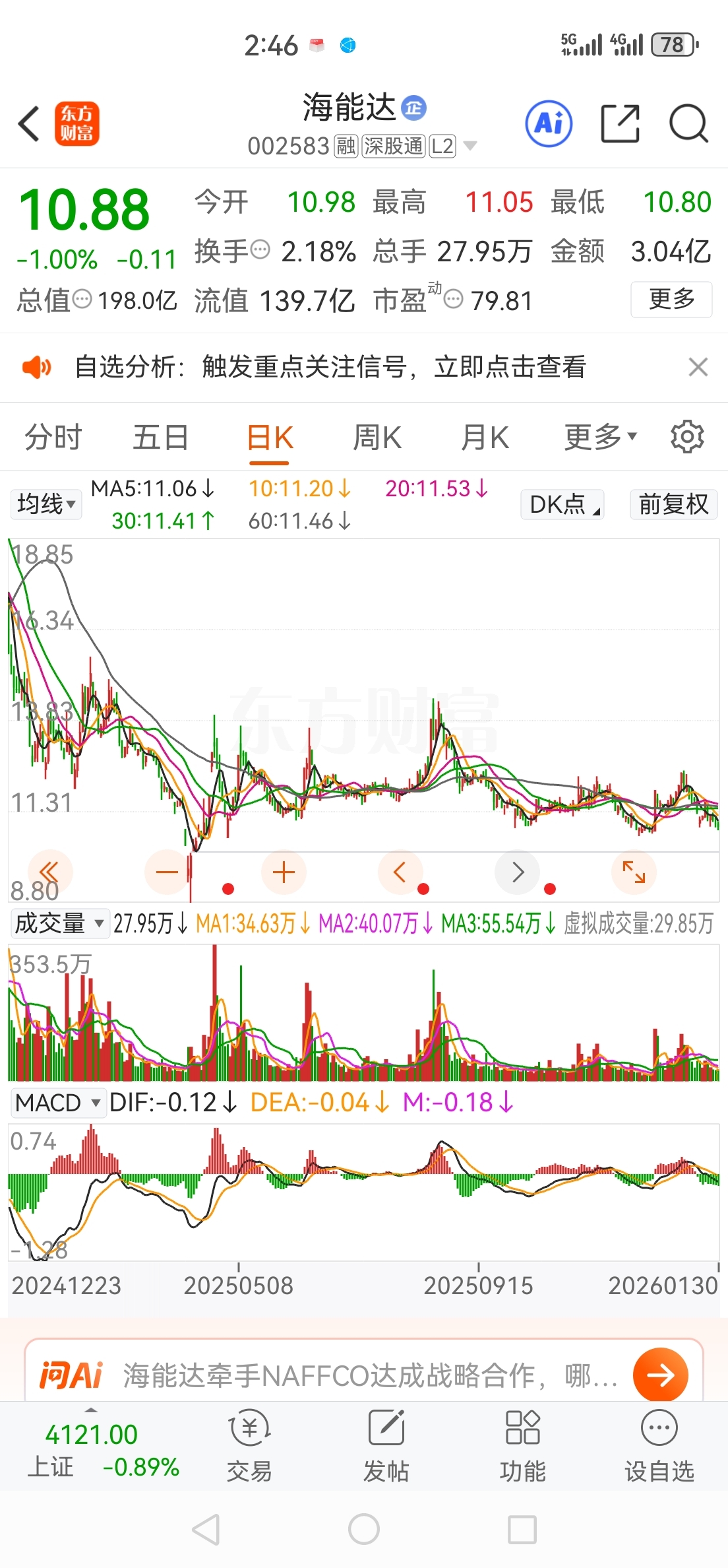 $海能达(SZ002583)$ 估计要阴跌到10.18补了缺口才有反弹