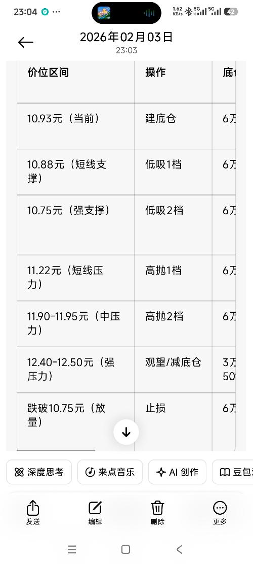 感谢大家的关注,股吧里真热闹,有人气,有争议,就如同k线中的分歧,各自操作,各自执行各自纪律,分险自担,又何必太较真。个个带情绪又如何能操作好股票?家和万事兴嘛!多空本为一体,如阳和阴。多转空时是 “阳极而衰” 。好比登山到顶峰后,氧气稀薄,体力耗尽,不得不开始下坡。空转多时是 “绝地逢生” 。好比严冬到了极致,土地深处已开始孕育生机,等待第一缕春风。多中有空,空中有多,多空既对立,又统一。今日盘面空方未能砸穿重要支撑位,那就一起反手做多嘛。多空互换,分歧转一致不是很好。明日突破11,底分型便成,后续温和放量,便可顺势而为正式开启上升通道,静待老龙苏醒!