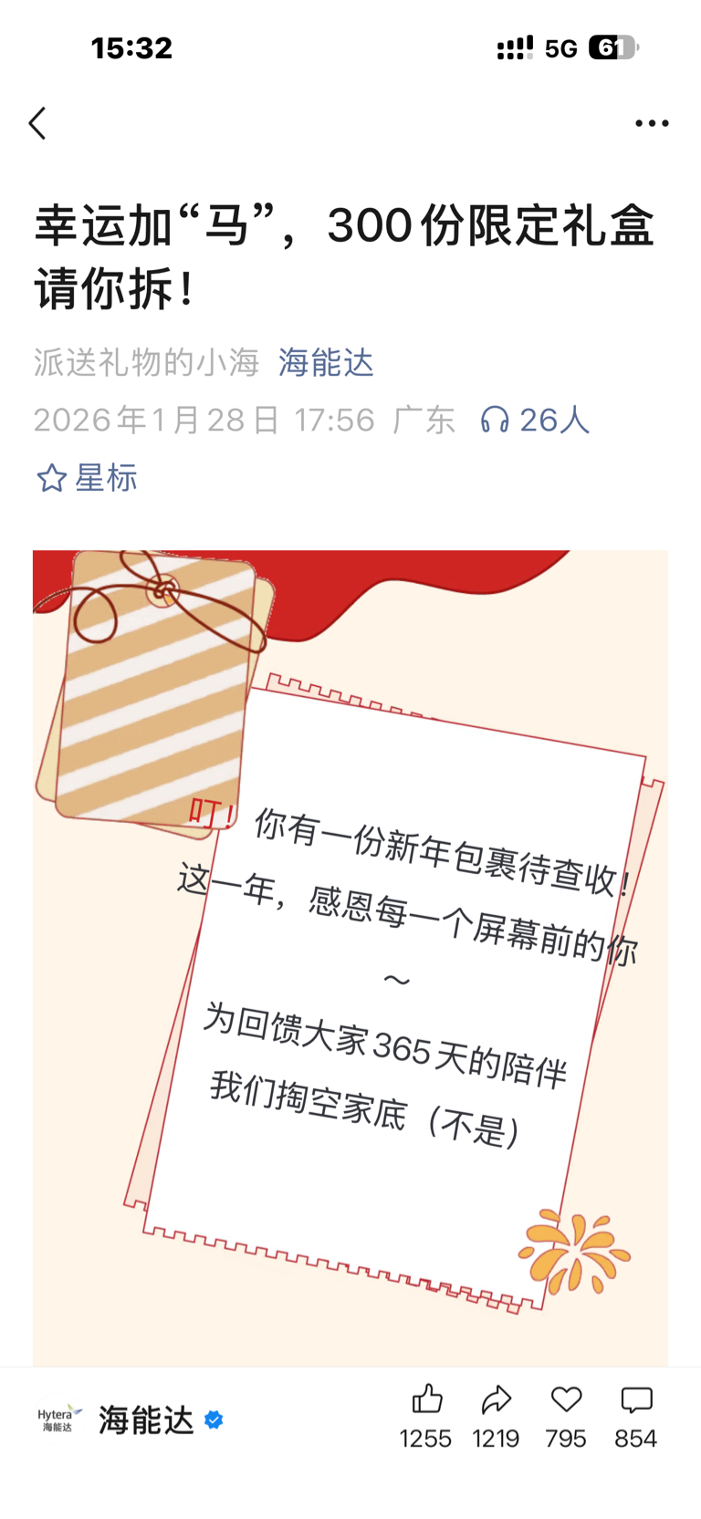 $海能达(SZ002583)$ 作为海能达的股东,过年不发点礼物吗?