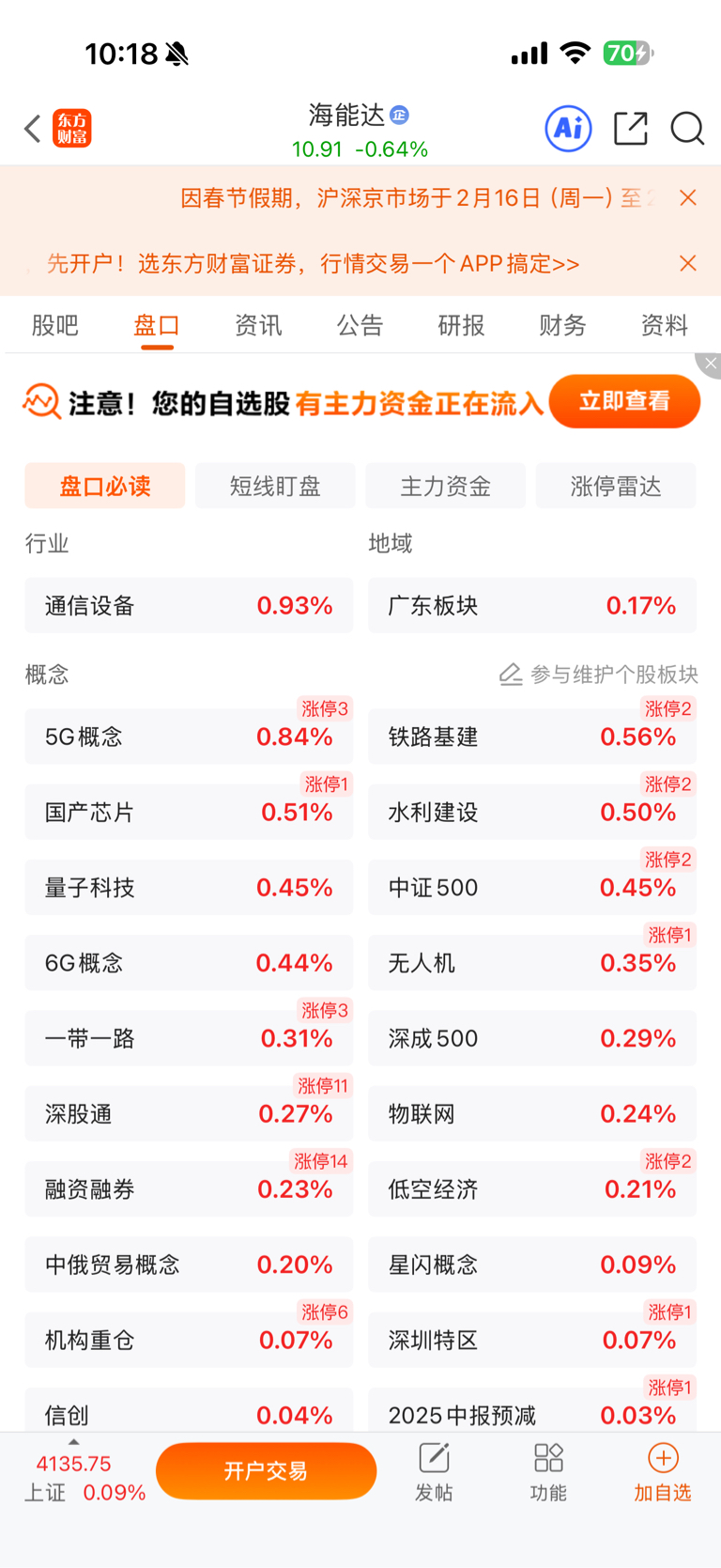 $海能达(SZ002583)$ 通讯涨了、广东板块涨了、6G5G涨了、量子科技、无人机都涨了,你到底跟谁?