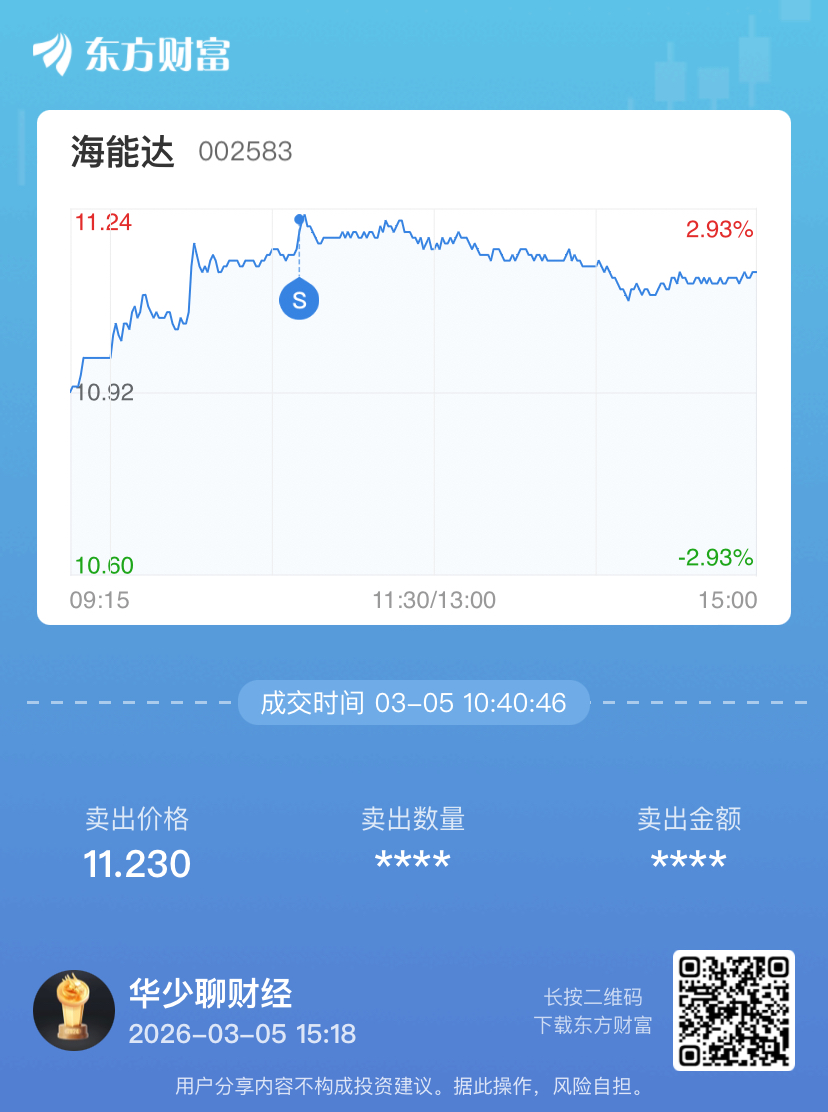 海能达2号上涨盈利5个点左右格局未出,结果第二天直接来个闷杀,今日还是把昨天潜伏的T出来保证资金安全,遇到这种主力很是无奈,底仓目前在成本区域再拿拿看啦$新莱应材(SZ300260)$ $润和软件(SZ300339)$