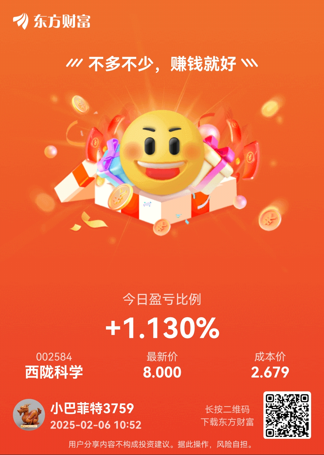 温馨提示: 1.根据《证券法》规定,禁止编造、传播虚假信息或者误导性信息,扰乱证券市场;2.用户在本社区发表的所有资料、言论等仅代表个人观点,与本网站立场无关,不对您构成任何投资建议。用户应基于自己的独立判断,自行决定证券投资并承担相应风险。《东方财富社区管理规定》