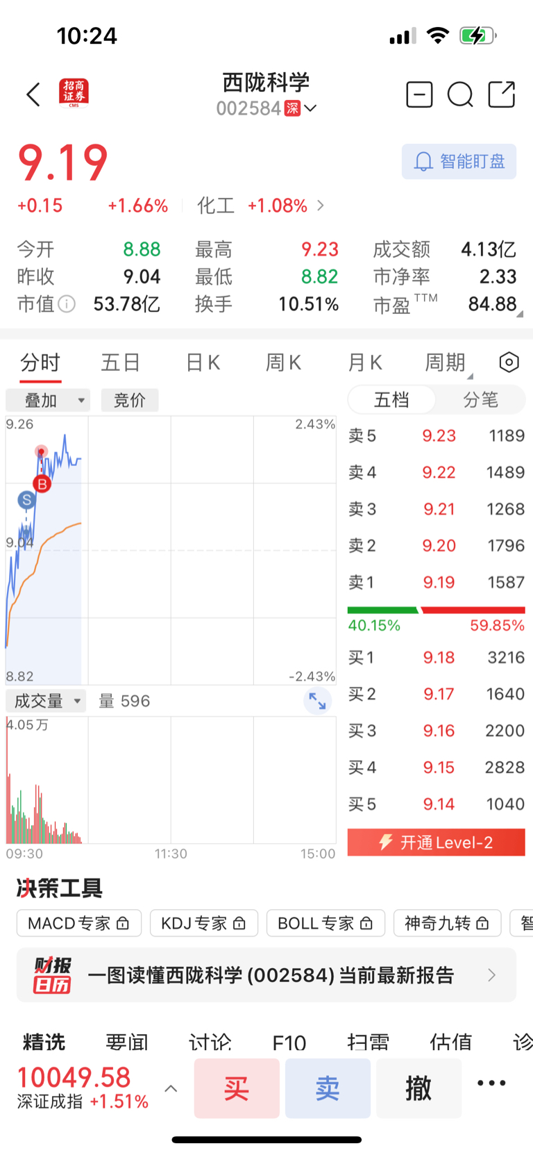 $西陇科学(SZ002584)$ 漂亮啊,明天坐等大跌了