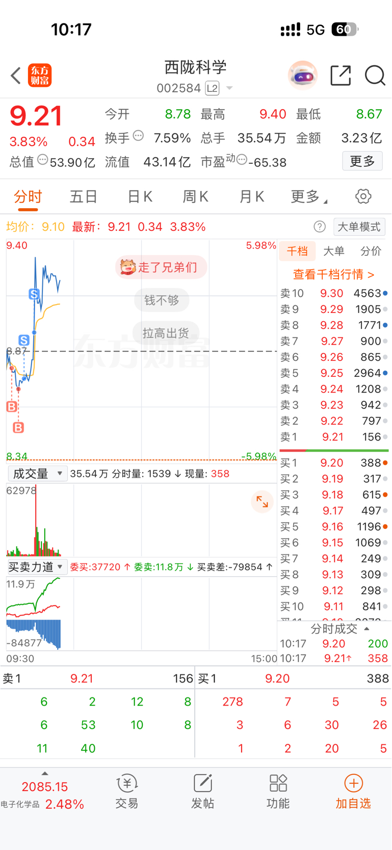 $西陇科学(SZ002584)$ 每次做T都小心翼翼的吃不到大肉