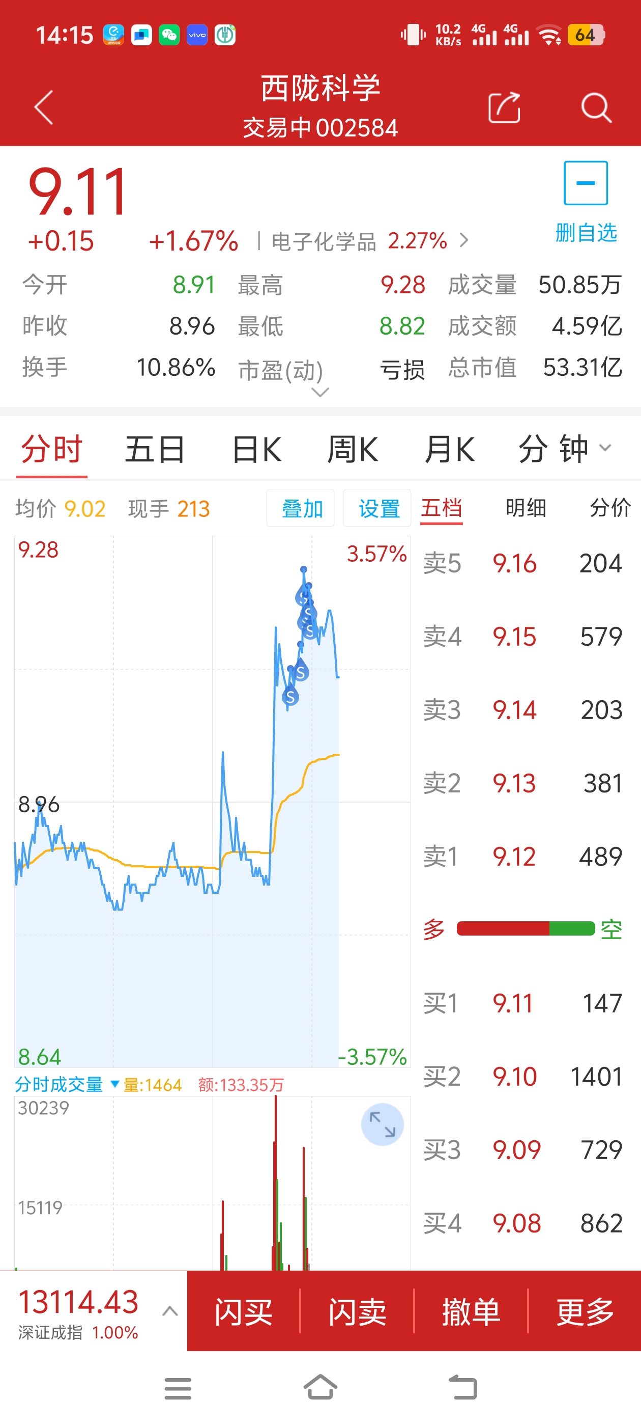 $西陇科学(SZ002584)$ 妄想骗炮,上影线杀手是白叫的吗