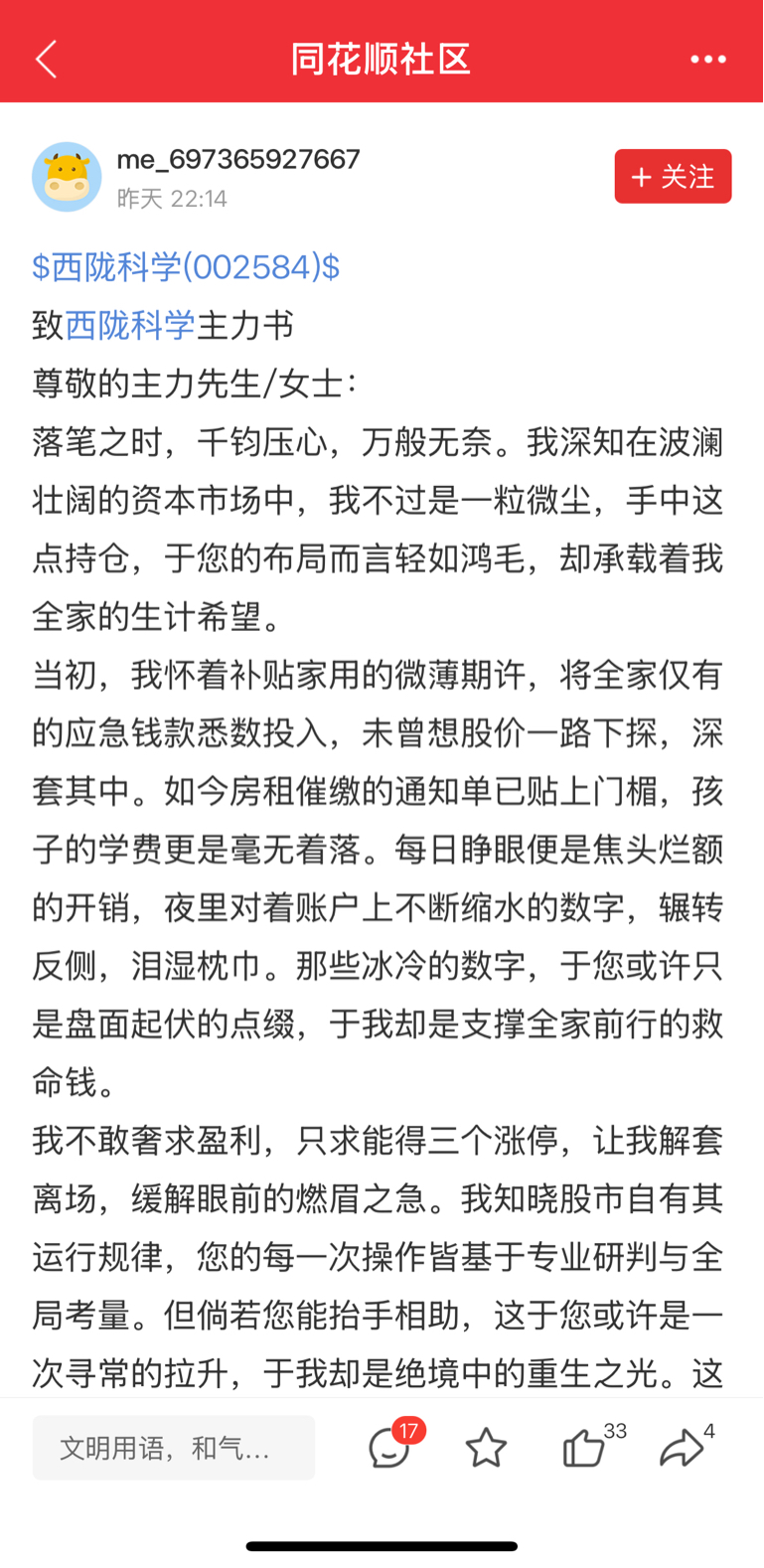 郑重声明:用户在财富号/股吧/博客等社区发表的所有信息(包括但不限于文字、视频、音频、数据及图表)仅代表个人观点,与本网站立场无关,不对您构成任何投资建议,据此操作风险自担。请勿相信代客理财、免费荐股和炒股培训等宣传内容,远离非法证券活动。请勿添加发言用户的手机号码、公众号、微博、微信及QQ等信息,谨防上当受骗!