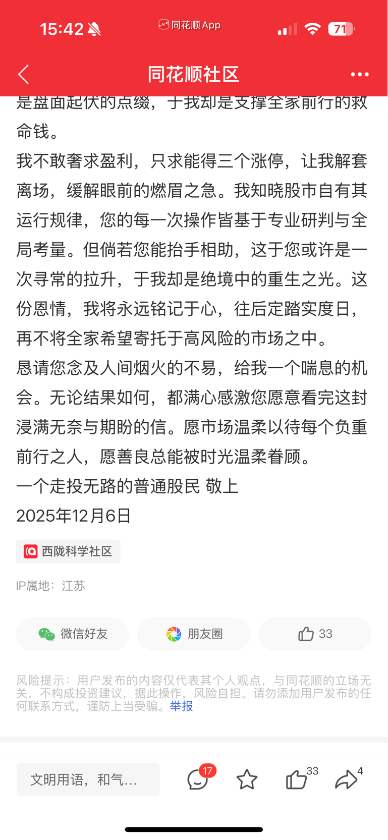 温馨提示: 1.根据《证券法》规定,禁止编造、传播虚假信息或者误导性信息,扰乱证券市场;2.用户在本社区发表的所有资料、言论等仅代表个人观点,与本网站立场无关,不对您构成任何投资建议。用户应基于自己的独立判断,自行决定证券投资并承担相应风险。《东方财富社区管理规定》