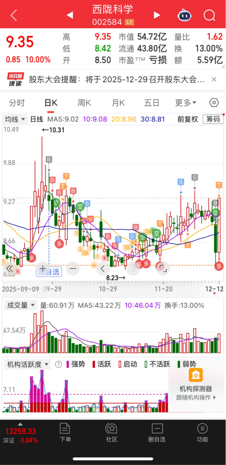 $西陇科学(SZ002584)$ 本来重仓买的你,磨了太久了,前段时间9.3全清了