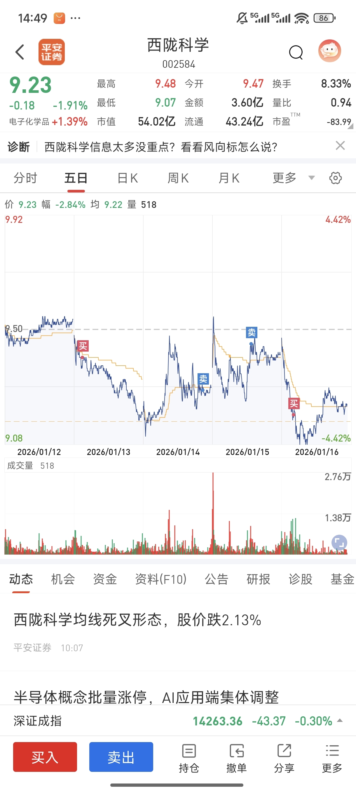 $西陇科学(SZ002584)$ 中长线持有,不到16一股不卖。中间做T降低成本。欧叶