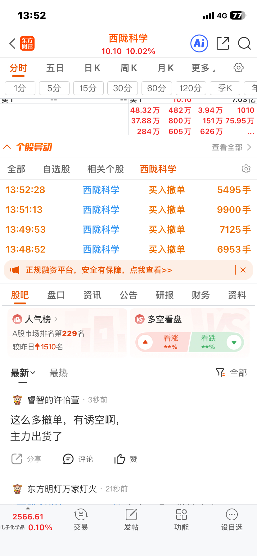 温馨提示: 1.根据《证券法》规定,禁止编造、传播虚假信息或者误导性信息,扰乱证券市场;2.用户在本社区发表的所有资料、言论等仅代表个人观点,与本网站立场无关,不对您构成任何投资建议。用户应基于自己的独立判断,自行决定证券投资并承担相应风险。《东方财富社区管理规定》