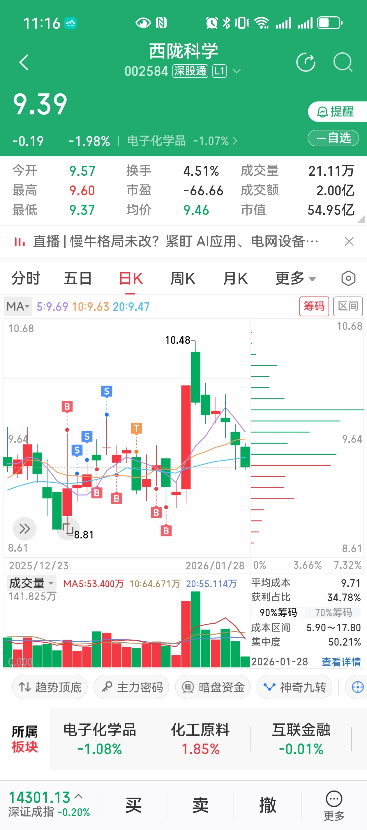 $西陇科学(SZ002584)$ 割肉了,盈利到亏损,我不卖它就不涨的,每次什么票一卖第二天就大涨,我这坚持了这么多天,怪我没割掉,留下的发财