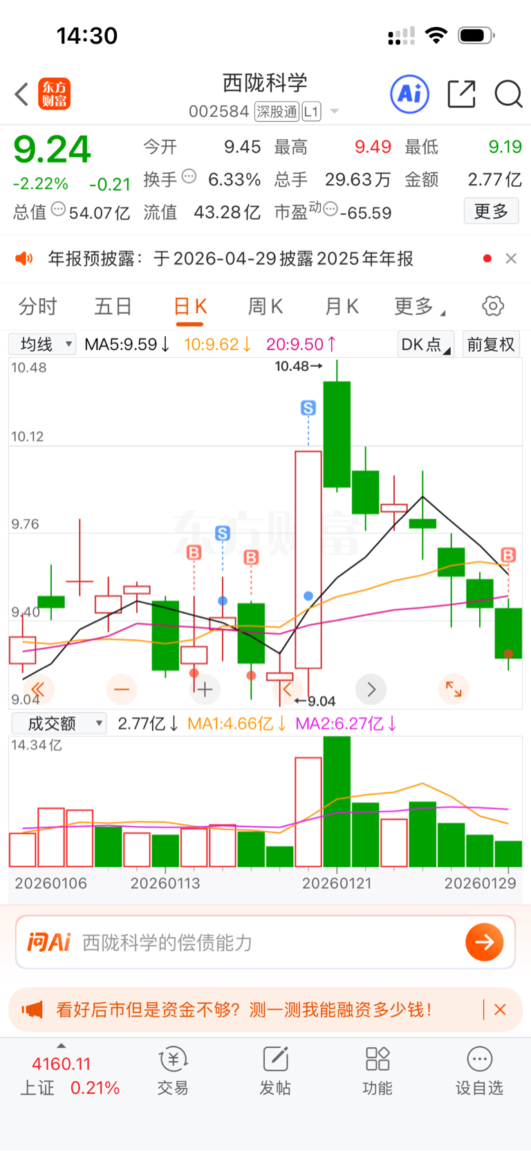 $西陇科学(SZ002584)$ 家人们,我又回来了,